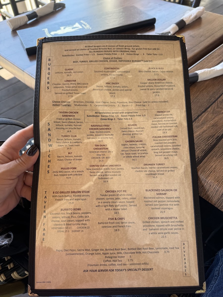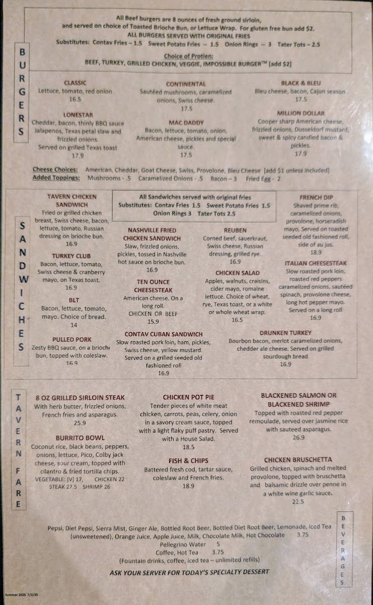 Original Fries, ConTav Fries (cheese sauce & Old Bay seasoning), Sweet Potato Fries (tossed in cinnamon sugar with a side of Maple Syrup), Garlic Parmesan